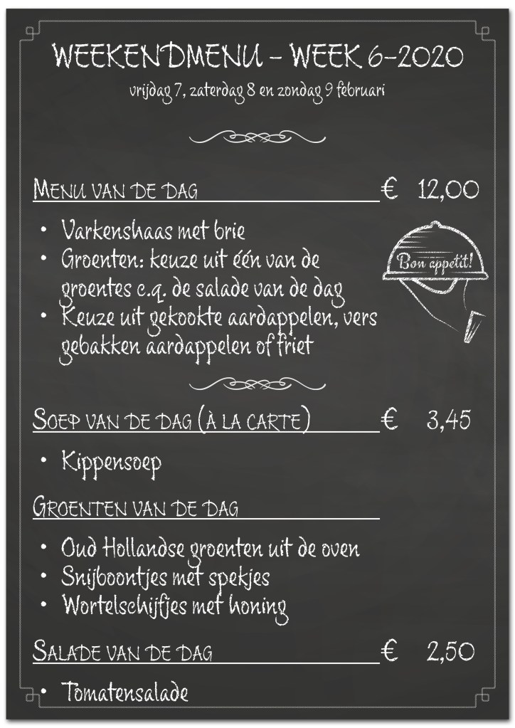 Hieronder treft u ons nieuwe weekendmenu aan. Het is een aanvulling op onze menukaart – winter 2019-2020.