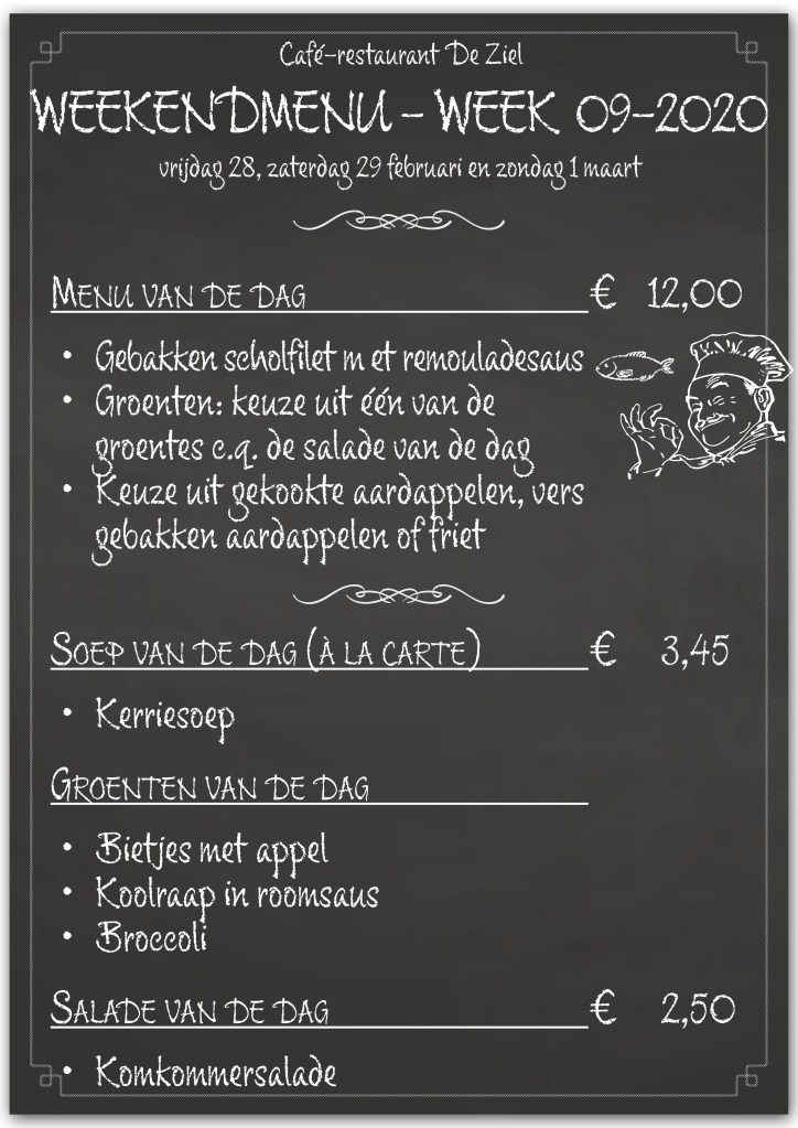Hieronder treft u ons nieuwe weekendmenu aan. Het is een aanvulling op onze menukaart – winter 2019-2020.