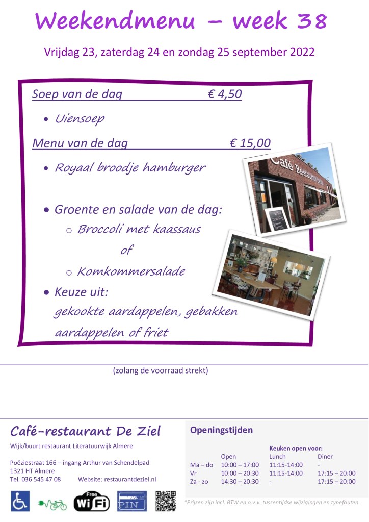 Hieronder treft u ons nieuwe weekendmenu aan, dat geldig is op vrijdag 23, zaterdag 24 en zondag 25 april a.s..