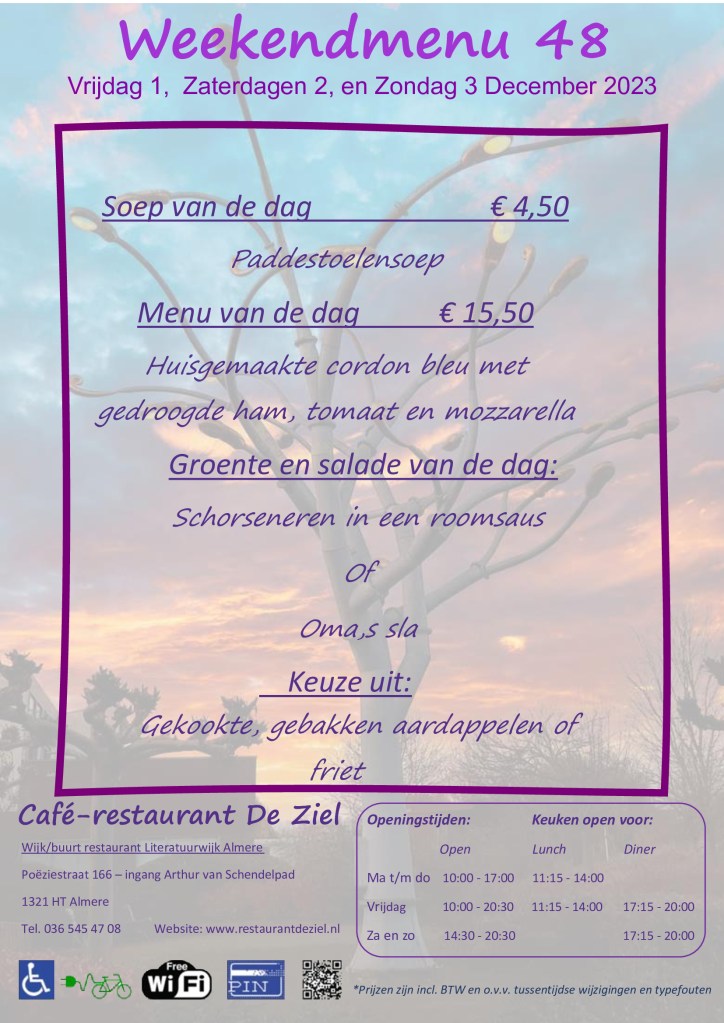 Hieronder treft u ons nieuwe weekendmenu aan,