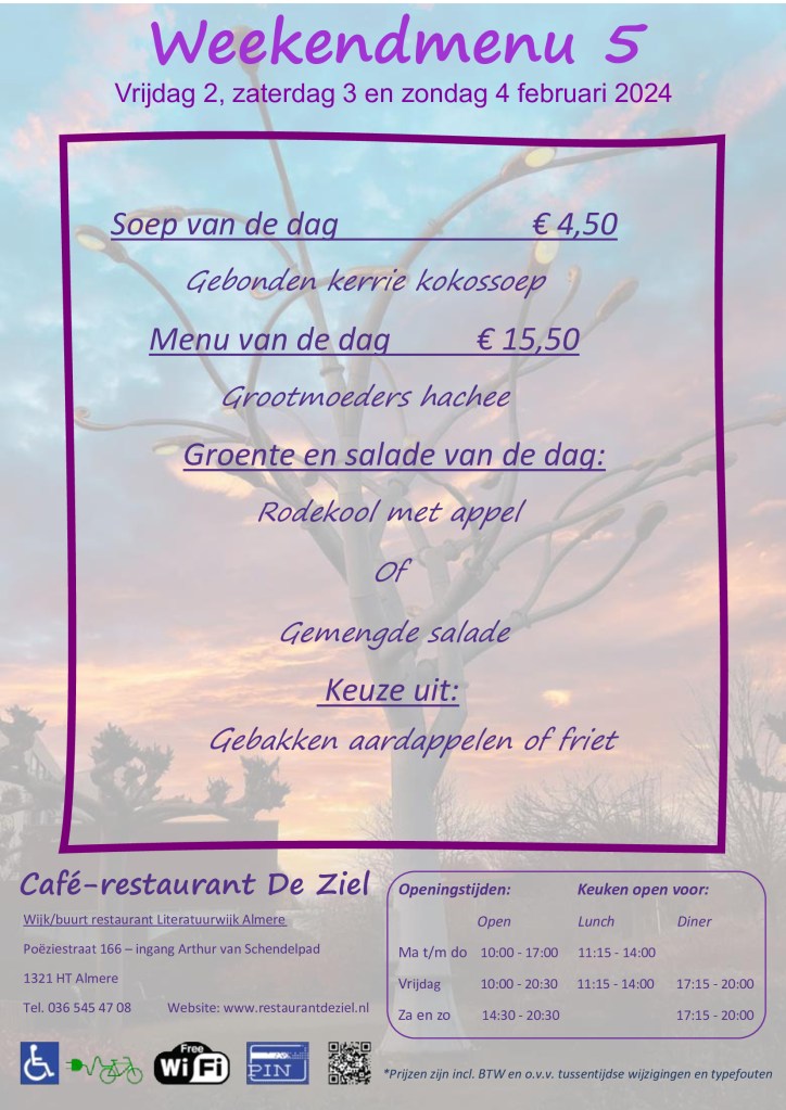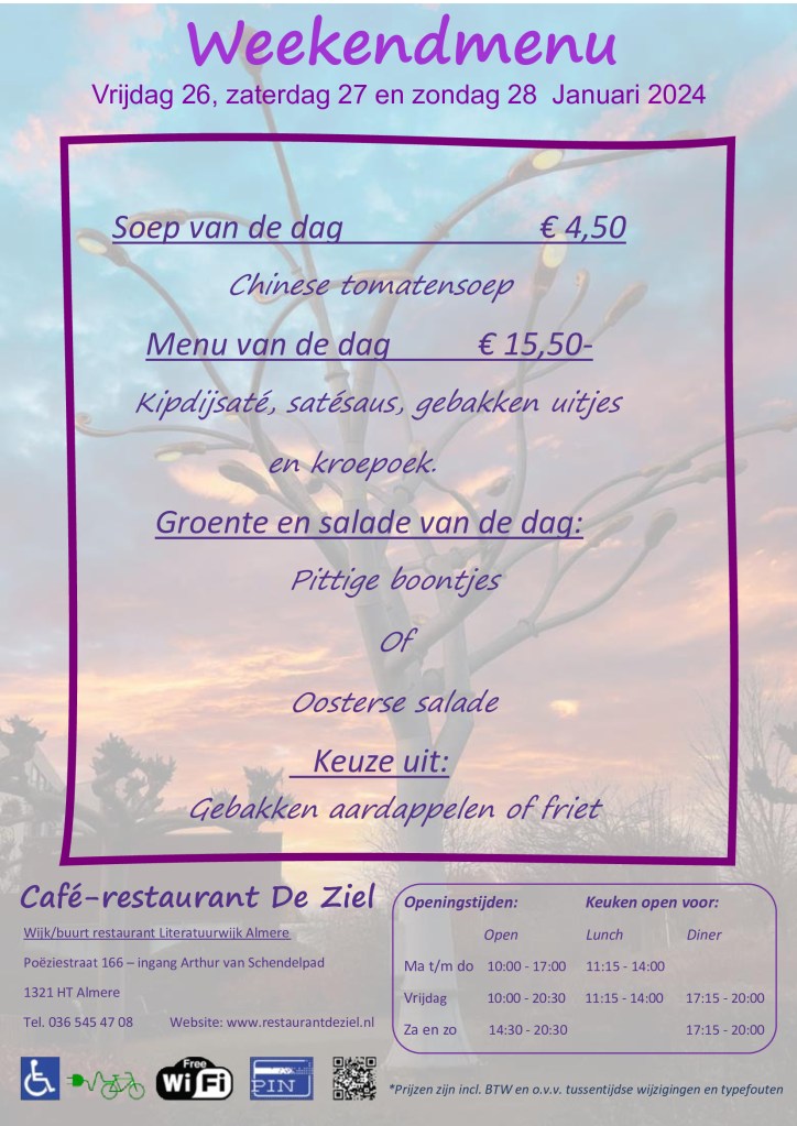 Hieronder treft u ons nieuwe weekendmenu aan,