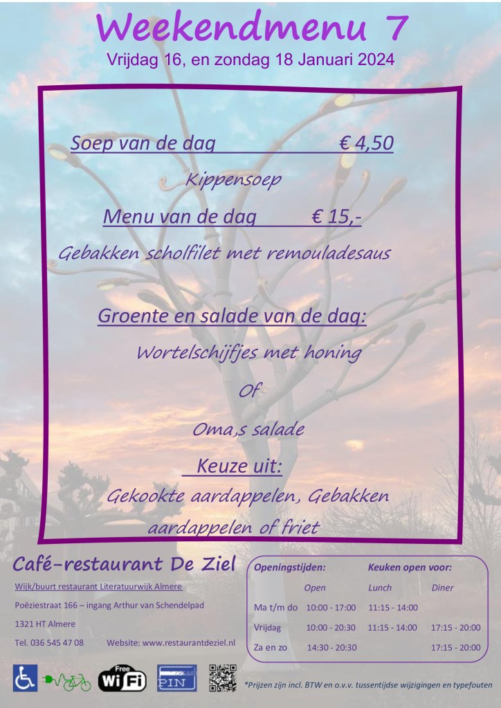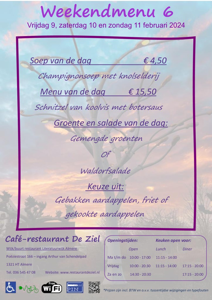 Hieronder treft u ons nieuwe weekendmenu aan,