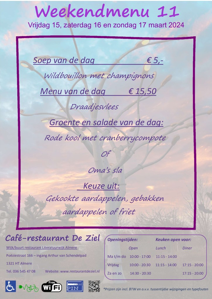 Hieronder treft u ons nieuwe weekendmenu aan,