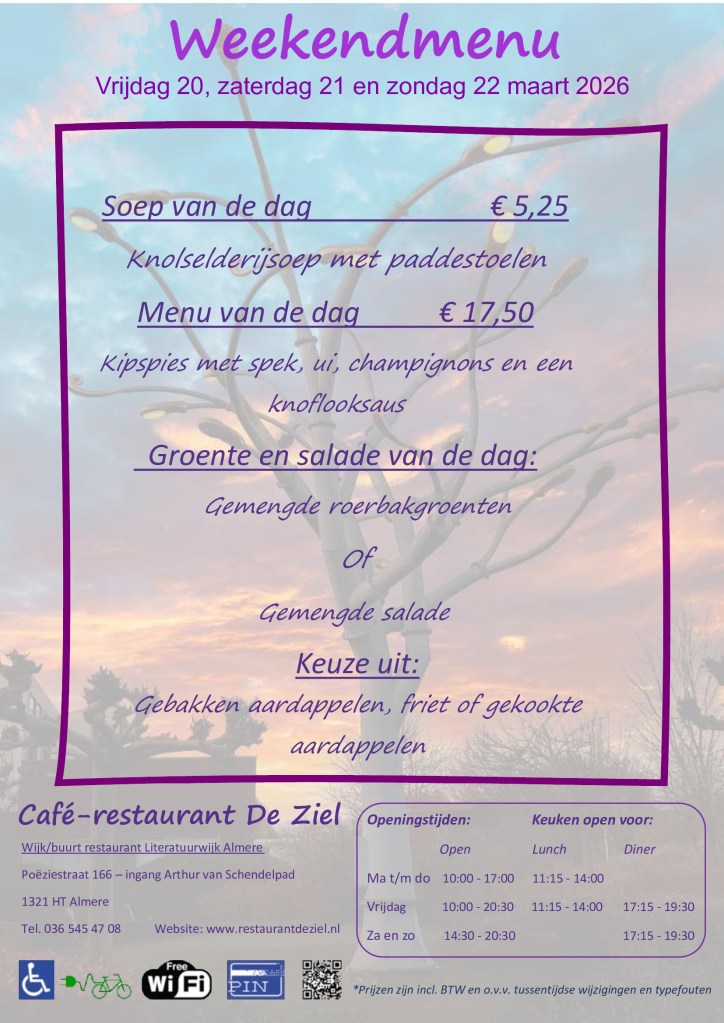 Het weekendmenu is een aanvulling op onze dinerkaart.