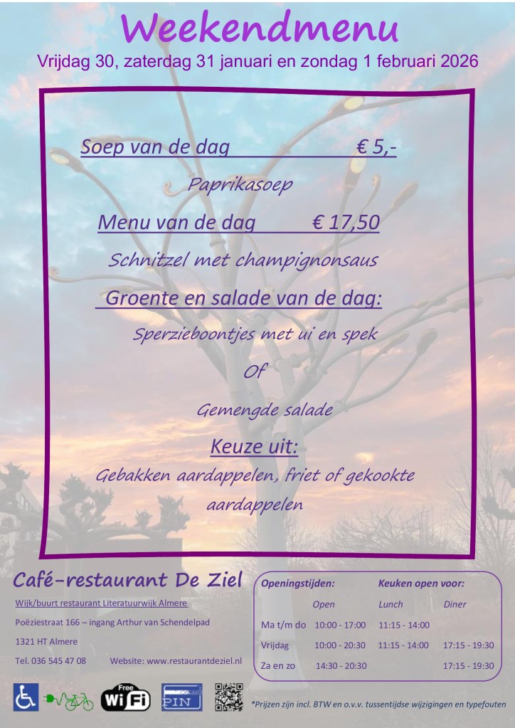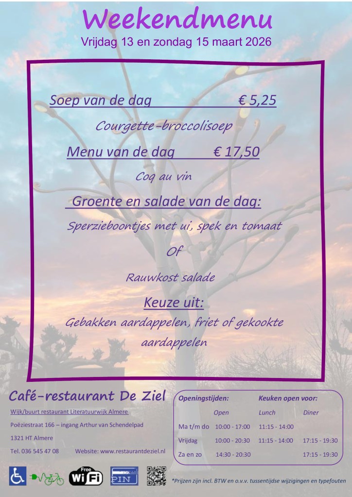 Het weekendmenu is een aanvulling op onze dinerkaart.