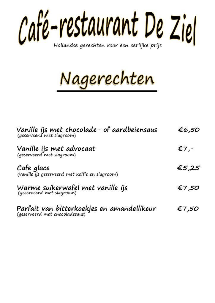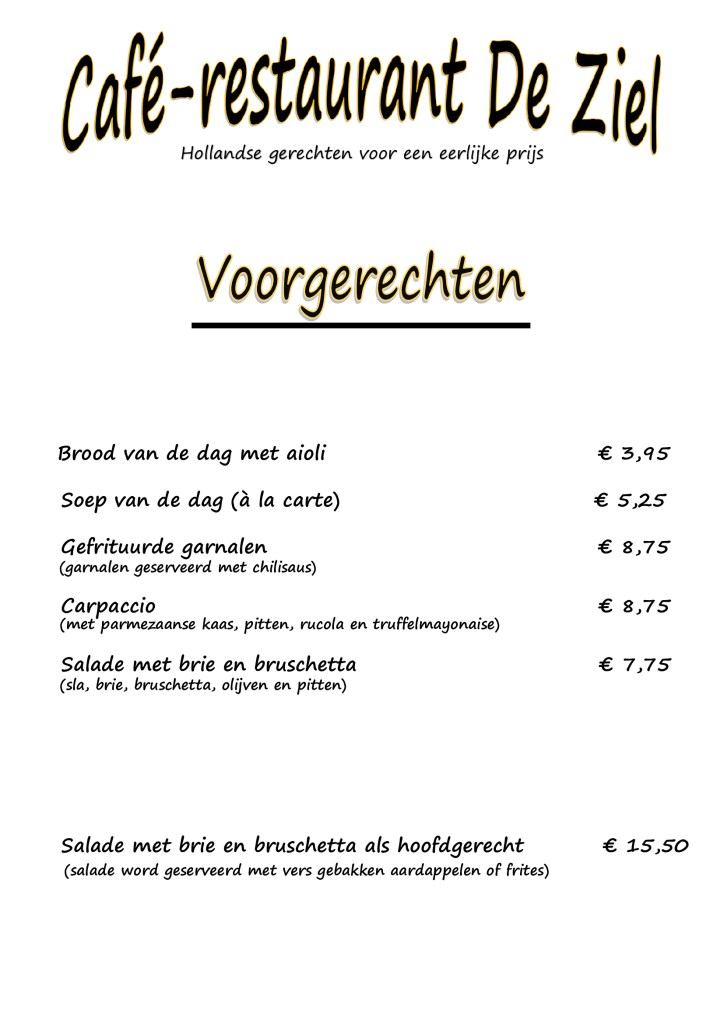 Hieronder treft u onze Dinerkaart